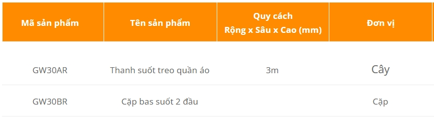 Bộ Giá Treo Quần Áo Cố Định GW30.AR/30.BR - GARIS