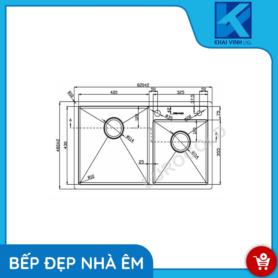 Kích thước khoét đá: D790 * R420 (mm)