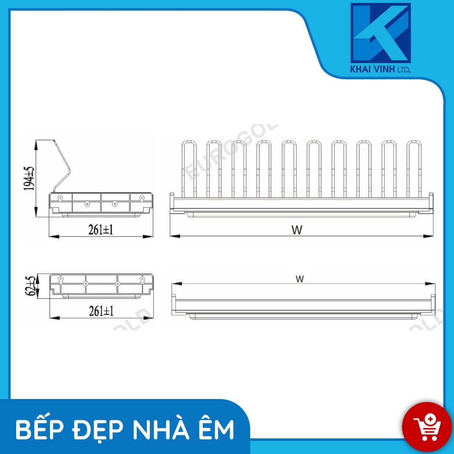 Kích thước sản phẩm: R564 * S261 * C(62-194) mm