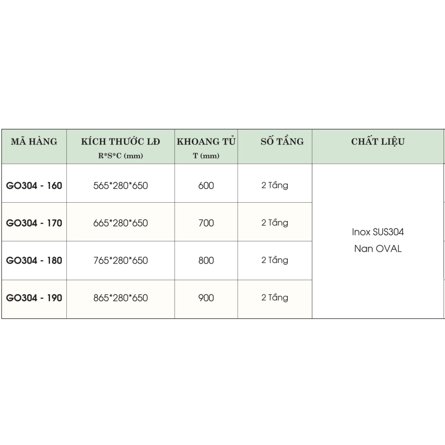 - Chất liệu: Inox SUS 304, NAN OVAL