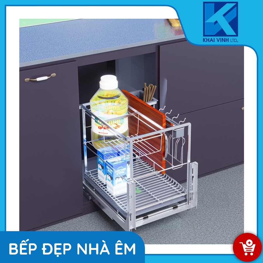 Giá được thiết kế âm tủ gọn gàng và tiện dụng phù hợp với nhiều không gian bếp khác nhau.