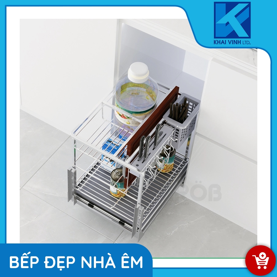 Được thiết kế gồm hai tầng, đựng được nhiều chai lọ gia vị có kích thước và chiều cao khác nhau.
