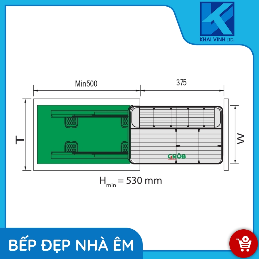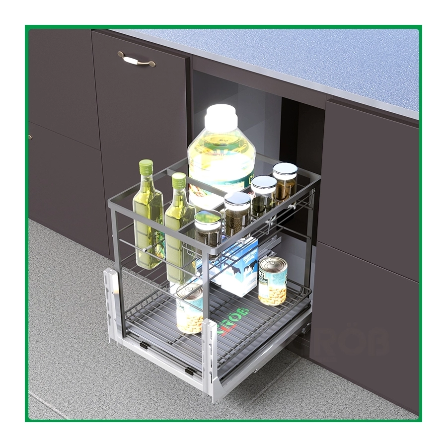 Kệ đựng gia vị hợp kim sơn nano có hệ thống ray giảm chấn chuyển động nhẹ nhàng, êm ái, giảm tiếng ồn trong không gian bếp một cách hiệu quả.