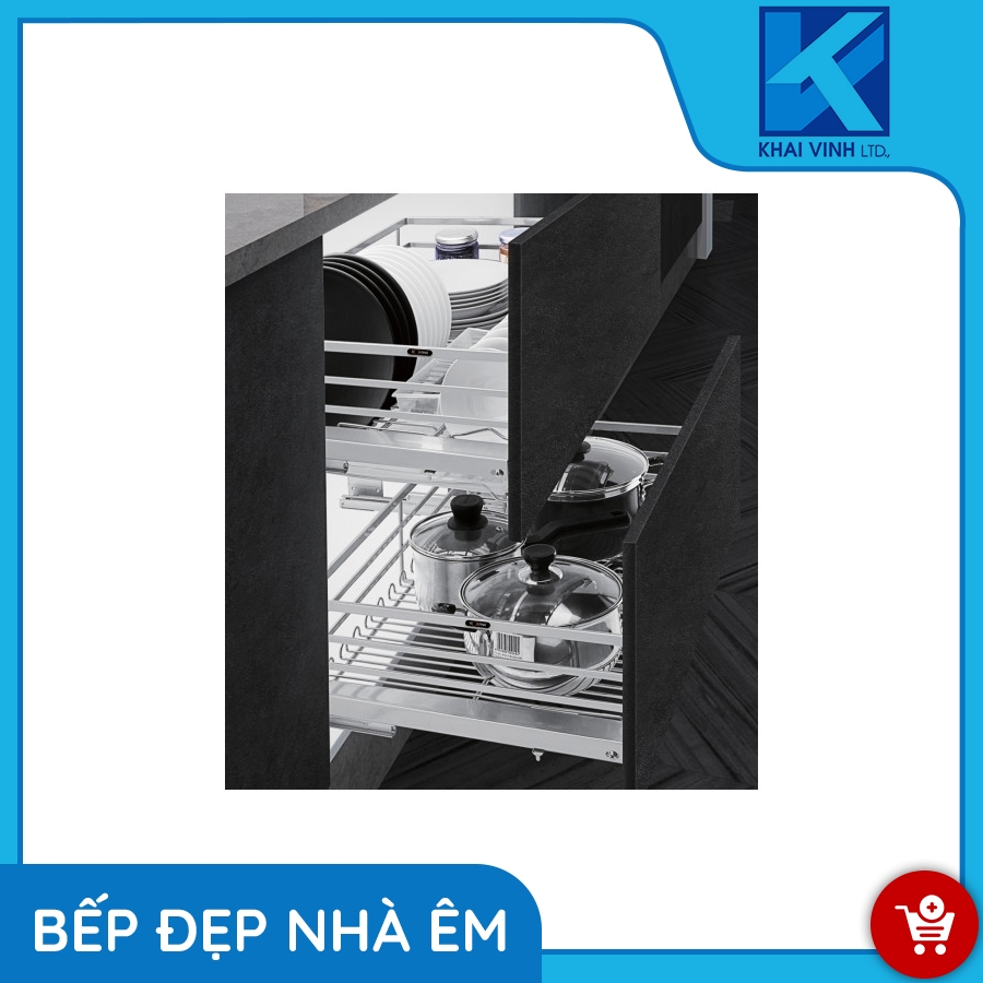Ray âm giảm chấn: Giá xoong nồi tủ dưới này có ray âm giảm chấn, giúp hạn chế tiếng động và chấn động khi thực hiện các hoạt động trong tủ bếp.