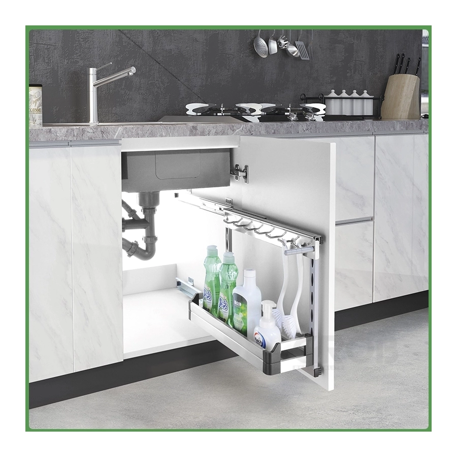 Giá đựng chai lọ tẩy rửa sử dụng để các chất tẩy rửa, xà phòng, nước rửa chén,... Những loại chất tẩy rửa thường không có lợi cho sức khỏe con người, vì thế việc sắp xếp chúng ở một giá riêng biệt là điều cần thiết. Thêm vào đó có thể tránh nhầm lẫn giữa các loại chai lọ khác nhau mà lại đảm bảo sức khỏe cho các thành viên trong gia đình.