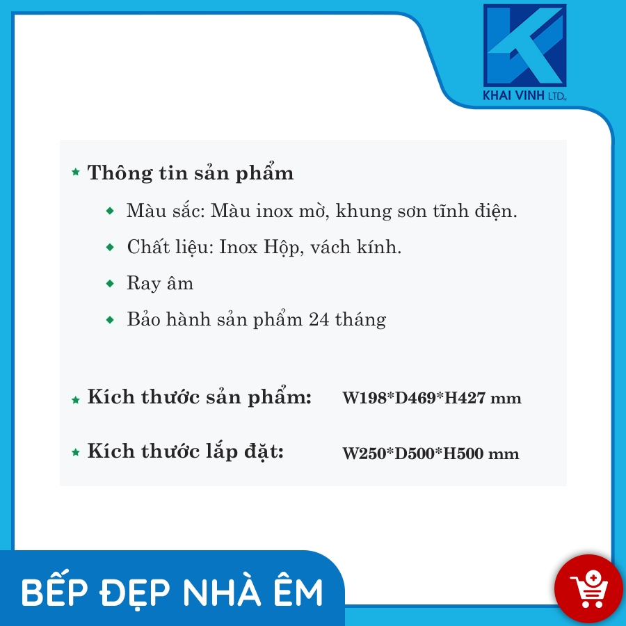 Khung sơn tĩnh điện, chắc chắn, chống han gỉ, chất liệu an toàn cho nhà bếp.