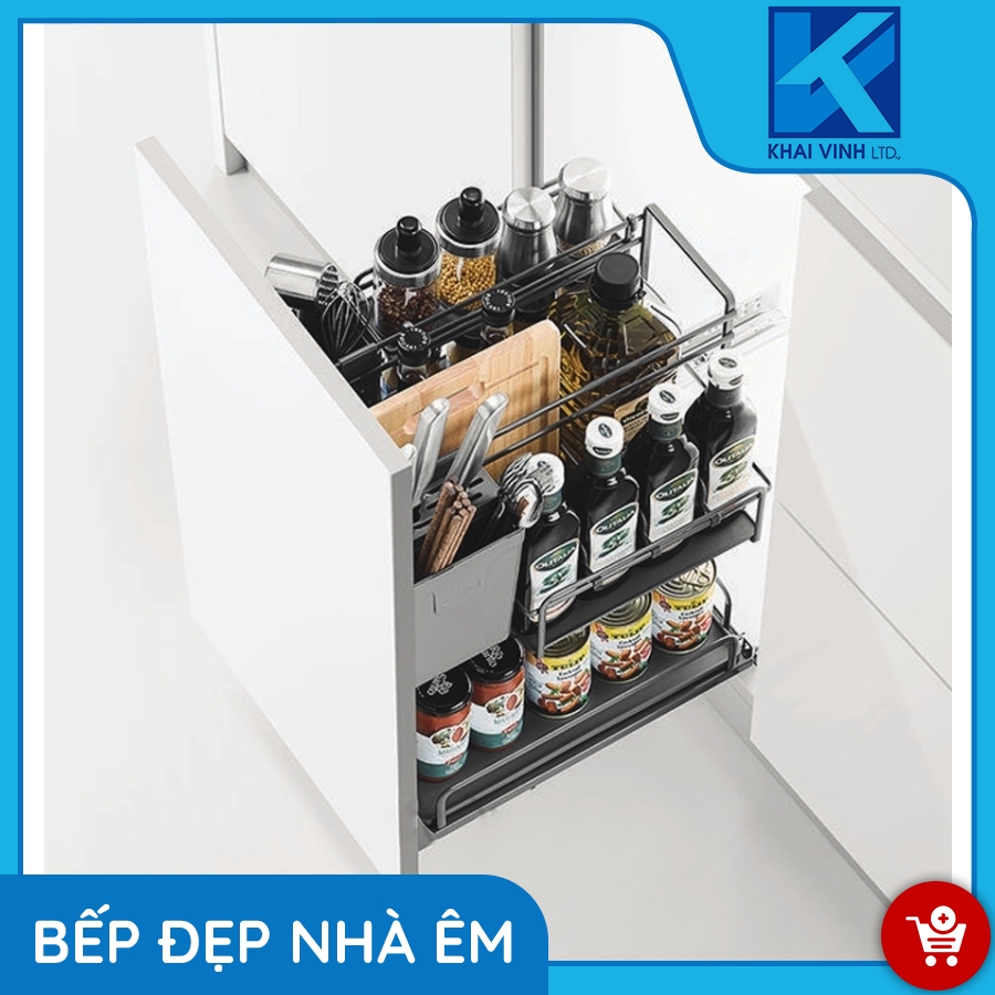 Được thiết kế gồm nhiều tầng, đựng được nhiều chai lọ gia vị có kích thước và chiều cao khác nhau.