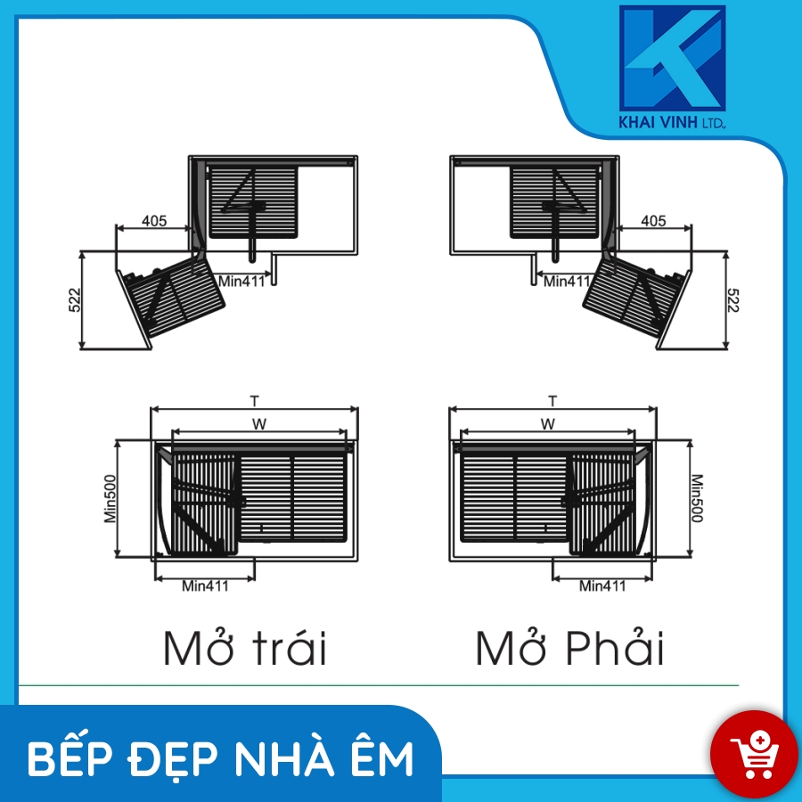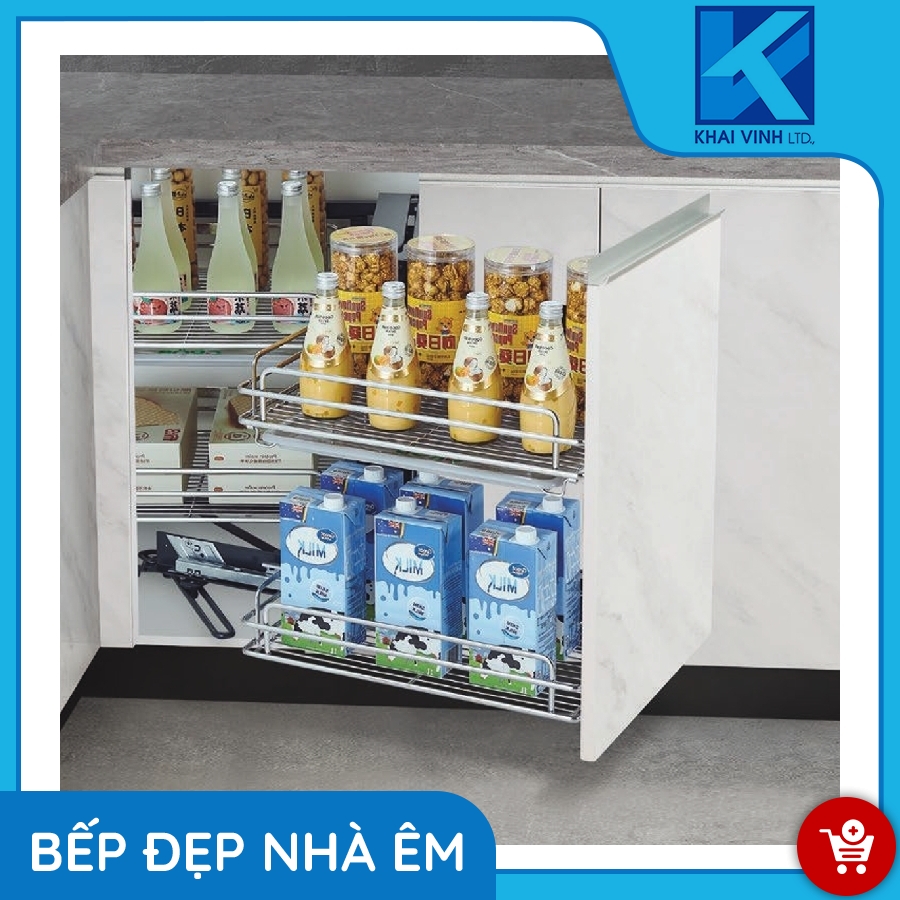 Sản phẩm được thiết kế gồm 2 khoang chứa với 4 khay để đồ rộng rãi được gắn với cánh tủ di chuyển theo giúp lấy đồ dễ dàng và tiện lợi hơn phù hợp với góc chết trong không gian bếp.