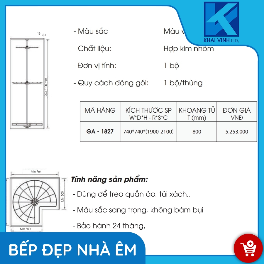 Có thể điều chỉnh kích thước trong khoảng từ 1900 - 2100mm phù hợp với nhiều loại kích thước tủ khác nhau